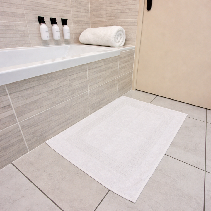 🛁 Tappetino da bagno bianco – Cotone riciclato – Qualità professionale da hotel.